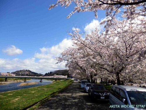 角館の武家屋敷のほど近くに、もう一つの桜の名所があります。 角館を流れる桧木内川に見事なソメイヨシノの桜並木を見ることができます。 (写真は4月28日のものです)