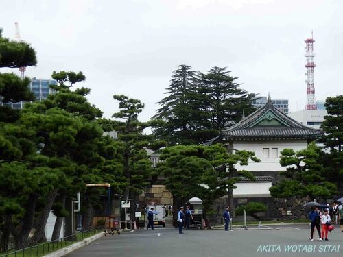 皇居外苑へ着ております。 皇居へ繋がる桔梗門の前まで来ていますが、見学の皆様で一杯でした。 午前9時現在で当日参観も満員になっていたので、外苑の見学を続けて行こうかと思います。
