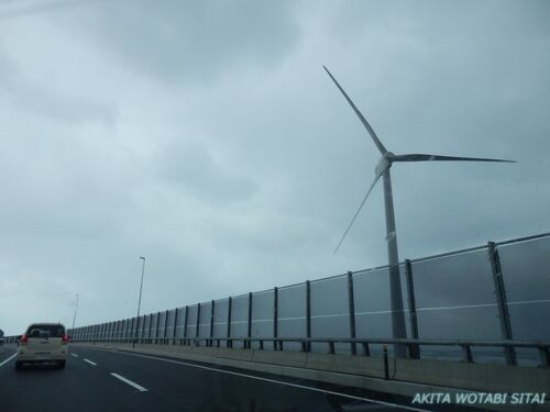 前回と話が前後してしまいますが、由利本荘市まで来ています。 その際、先日開通したばかりの下浜道路を通って来ました。 ここは道路のすぐ近くで風車が見られて面白い場所ですね