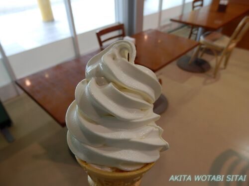大潟村の生態系公園へ行った帰りは、やはり道の駅おおがたの潟の店に寄ってみました。お店の中の様子は最近見たばかりなので、今回はソフトクリームで休憩だけをして行こうと思います。