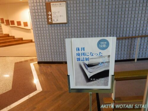 現在、秋田県立大学のスロープで、「休刊・廃刊になった雑誌展」が開催されています。 貴重な、休刊・廃刊になった雑誌を見れる機会なので、今回訪れてみました。