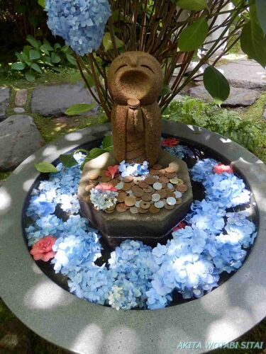 今、あじさいの花が真っ盛りの男鹿の雲昌寺ですが、境内には色々なお地蔵さんが居らっしゃいます。 今回は、こちらを中心に紹介して行きたいなと思います。 こちらは入り口すぐに笑顔でお出迎えしてくれるお地蔵さんです。