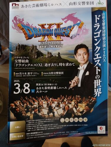 ランキング参加中地域 2025年3月8日(土)に開演された、山形交響楽団特別公演inミルハス「ドラゴンクエストの世界」を鑑賞して来ました。 ドラゴンクエストXIはプレイしたことは無かったのですが、秋田でドラゴンクエストの楽曲がオーケストラで演奏されるの…