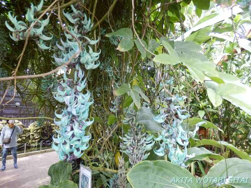 大潟村の生態系公園にある観賞温室で、ヒスイカズラが満開になっています。 宝石のヒスイような花と言うので、期待しながら見に行きました。