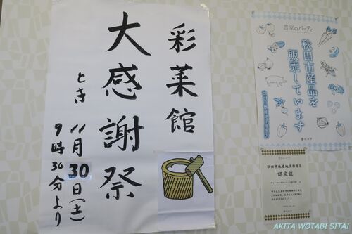 秋田市のJA直売所の彩菜館で買い物をしていたら、たまたま大感謝祭が行われるという張り紙を発見しました。 11月30日の9時半から行われるようです。