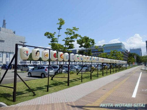 竿灯まつりの開催にあたって、会場周辺はお祭りムードになっています。 秋田市役所でも大きなのぼり旗や提灯で盛り上げられています。 今回はこちらの様子を紹介したいと思います。