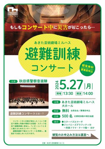 今回は、5月27日(月)に行われた「あきた芸術劇場ミルハス 避難訓練コンサート」に参加したのでその時の様子をお届けしたいと思います。 ミルハス公式Xポストより